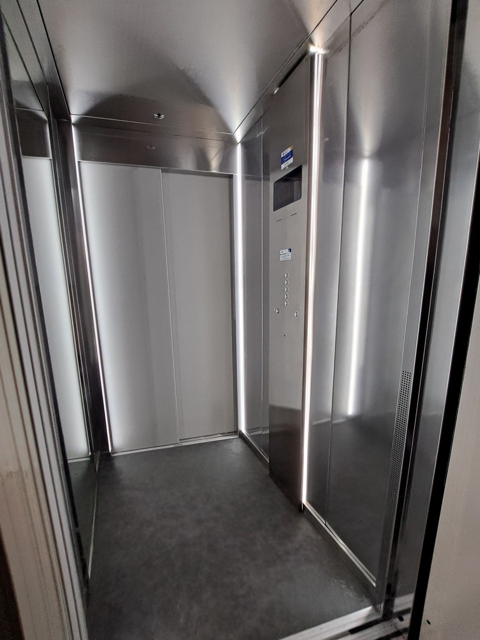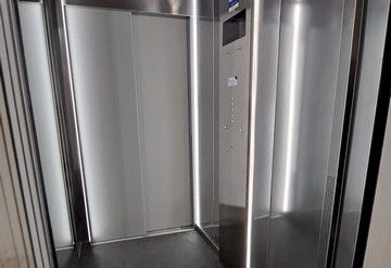 Accesso opposto con porte di piano inox.